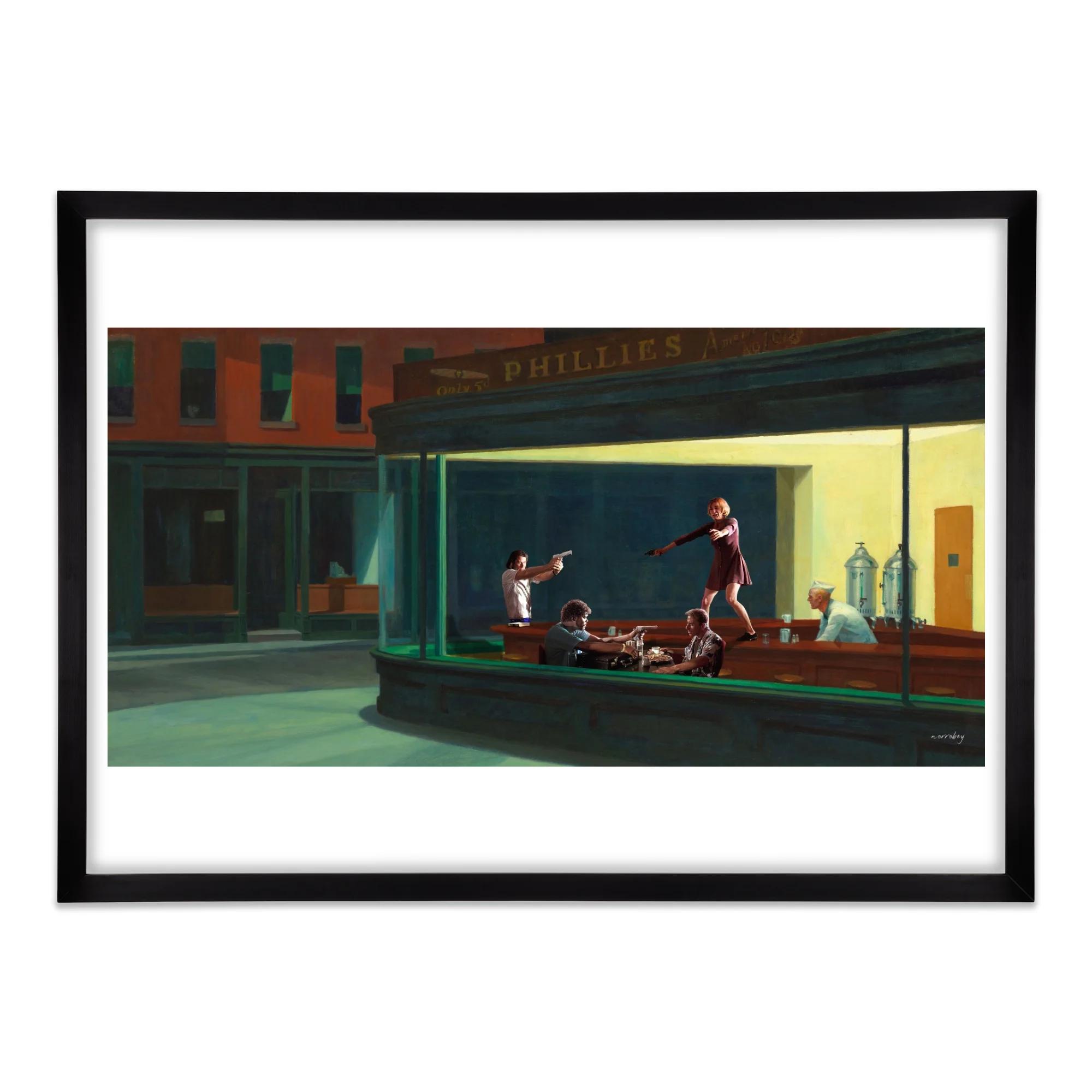 In collaboration with the artist Norro Bey , you can now own his tribute to Quentin Tarantino's Pulp Fiction and Edward Hopper's famous painting, Nighthawks.